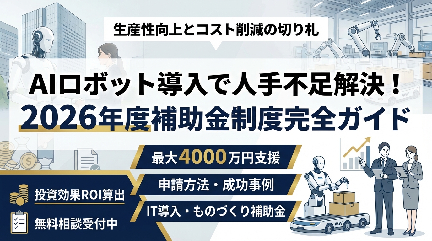 そんな中、AIロボットの導入は単なる自動化にとどまらず、人材戦略の転換点として注目されています。しかも、国や自治体が提供する補助金制度を活用すれば、導入コストの負担軽減も期待できます。この記事では、活用可能な補助金制度から地域別支援策まで、経営戦略的な視点でAIロボット導入を成功に導くポイントをわかりやすく解説します。